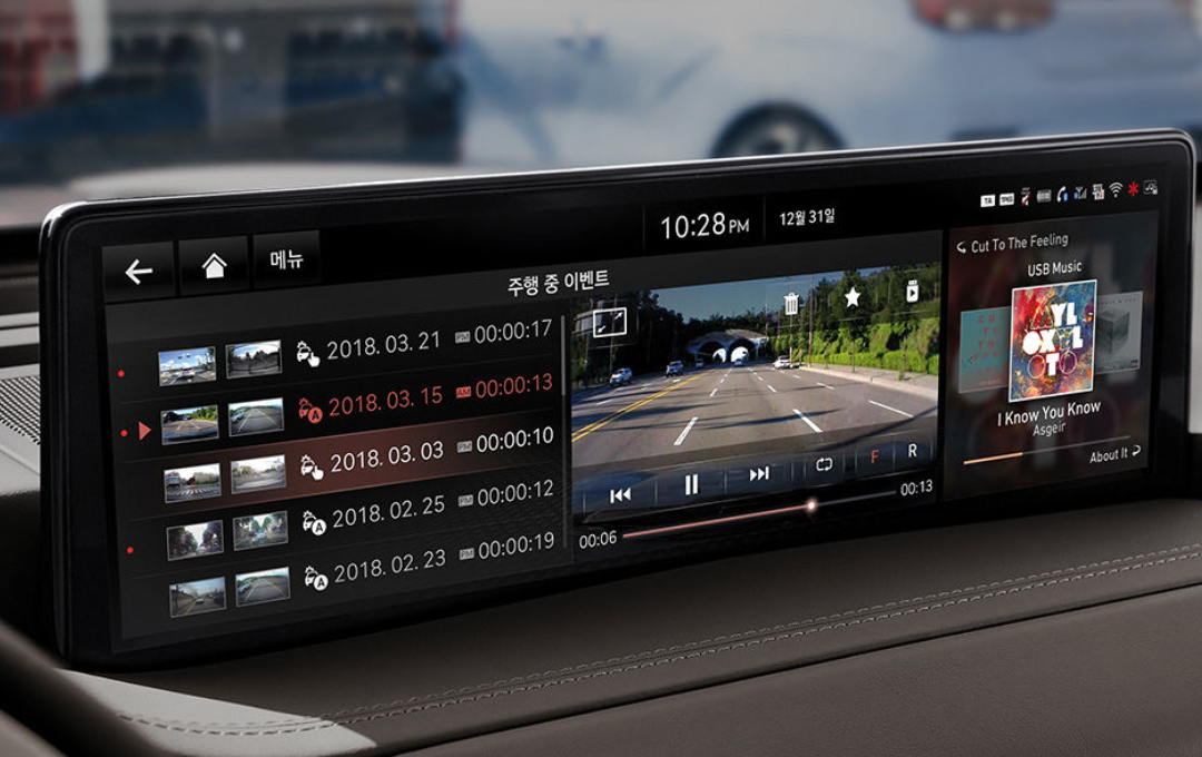 - 14.5 인치의 와이드 디스플레이가 설계되어 있습니다. 디스플레이는 한눈에 보기 편하도록 시인성이 좋고 직관적이며 조작이 간편합니다. 제네시스 인포테인먼트 시스템을 통해 커넥티드 서비스, 카페이, 발레 모드 등 다양한 기능들을 제공받을 수 있습니다.