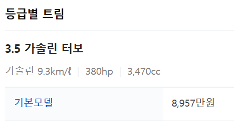 - 제네시스 G90은 3.5 가솔린 터보와 3.5 가솔린 터보 AWD 버전으로 등급을 나눌 수 있습니다. 각각의 가격은 아래와 같습니다.