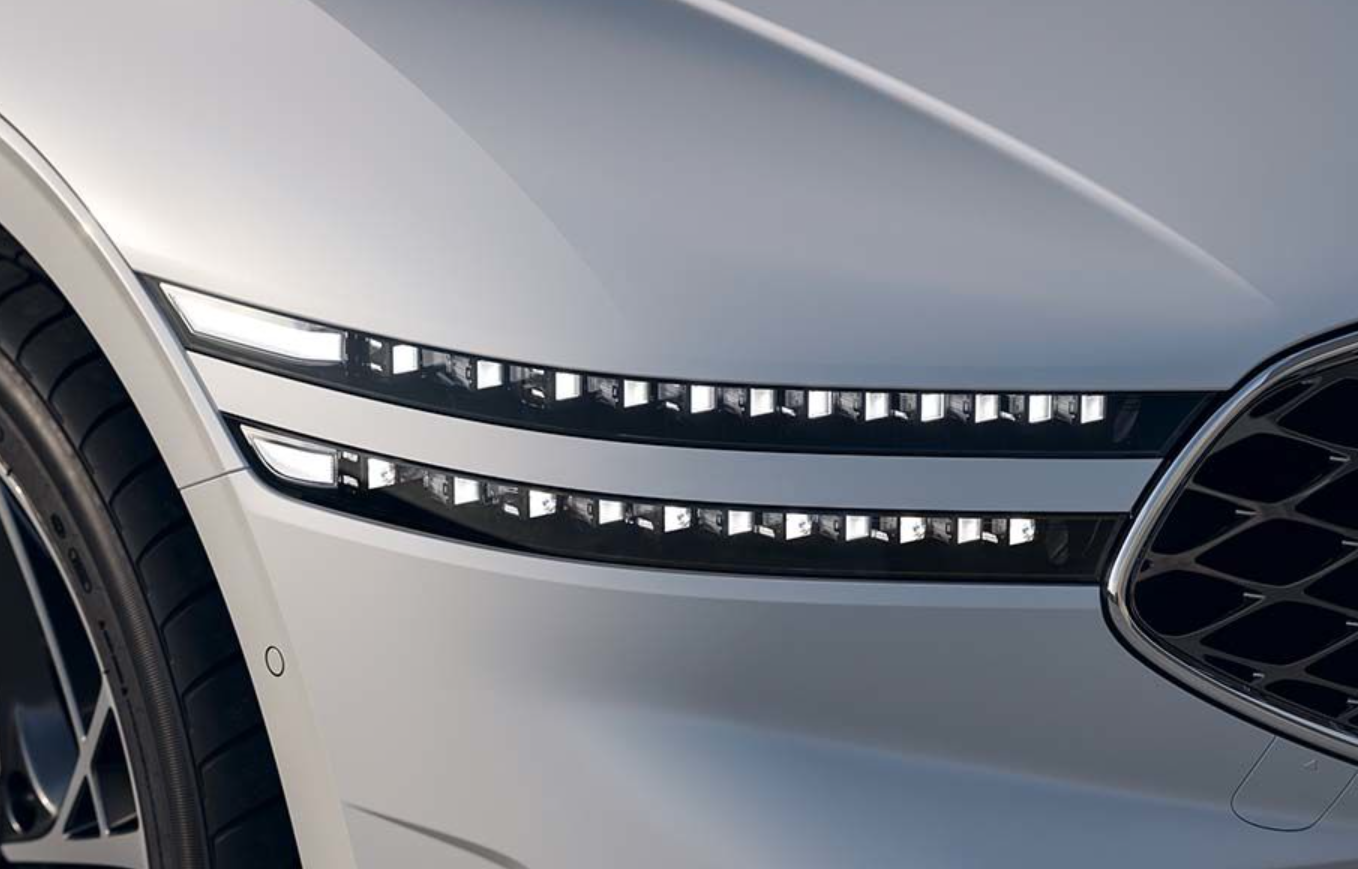- 제네시스 G90이 선보이는 두 줄의 얇은 헤드램프는 MLA(Mircro Lens Array) 기술이 적용된 하향등 렌즈와 주간 주행등 렌즈, 상향등 렌즈를 교차 배열하여 G90의 존재감을 나타내줍니다. 앞면의 크레스트 그릴은 제네시스의 시그니처인 G-MATRIX 패턴을 엇갈리게 두 층으로 쌓아 올려 고급스러운 느낌을 줍니다. 여기에 20인치 휠과 미쉐린 타이어가 더해지면서 볼륨감과 럭셔리함을 더해주고 있습니다.