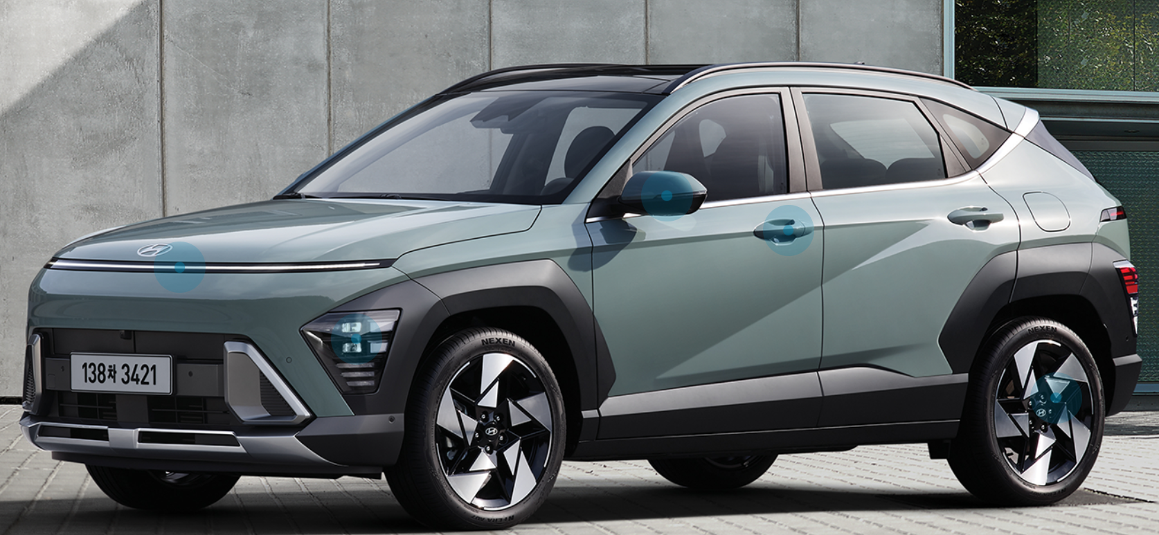 - 2023 현대 코나는 슬림하고 와이드한 수평형 레이아웃에 하이테크한 인테리어 요소가 더해지면서 코나만의 유니크한 분위기를 연출합니다. 코나는 2020년에 '더 뉴 코나'라는 이름으로 페이스리프트를 하면서 앞모습은 보다 넓은 비율로 변경되었고, 볼륨감을 강조한 후드와 슬림한 그릴 사이의 예리한 모서리는 상어의 코에서 영감을 받아 제작되었습니다. 전장은 페이스리프트 이전보다 40mm나 늘어났으며 전체적으로 수평적 구조가 강조되도록 센터페시아를 구성해 공간이 시각적으로 확장되는 듯한 효과를 나타냈습니다.