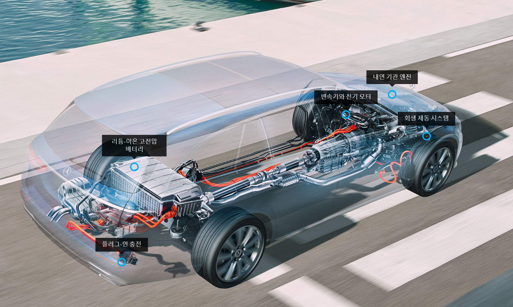 - 도심에서는 순수하게 전기로만 주행이 가능하며, 장거리 주행 시에는 내연 기관 엔진을 이용할 수 있어 두 가지 구동 장치의 장점을 모두 제공합니다. 또한 제동 시에는 에너지가 재생되어 더욱 효율적인 주행이 가능합니다.