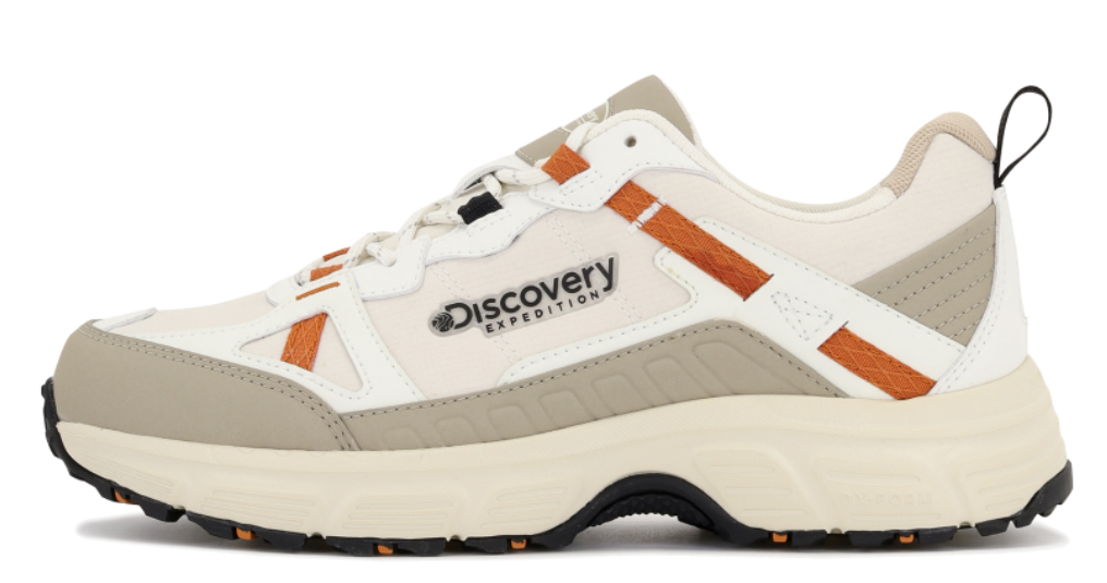 - 다음으로 소개해 드릴 제품은 디스커버리 익스페디션 마운틴 TR 입니다. 이 운동화는 사실 정확히는 가벼운 산행이나 등산을 위한 트레킹화로 출시되었는데요. 편안한 착화감과 이쁜 색상으로 인해 일상에서도 자주 신을 수 있는 데일리용 운동화로도 많이 애용되고 있습니다. 디스커버리 익스페디션 라인업 중에서는 날렵한 편에 속하며 캠핑, 트레킹과 같은 야외 활동부터 고프코어나 스트릿한 착장, 데일리룩을 위한 일상화 등 다양하게 연출이 가능하기 때문에 그 활용도가 무궁무진해 많은 사람들에게 사랑을 받고 있는 제품입니다.
