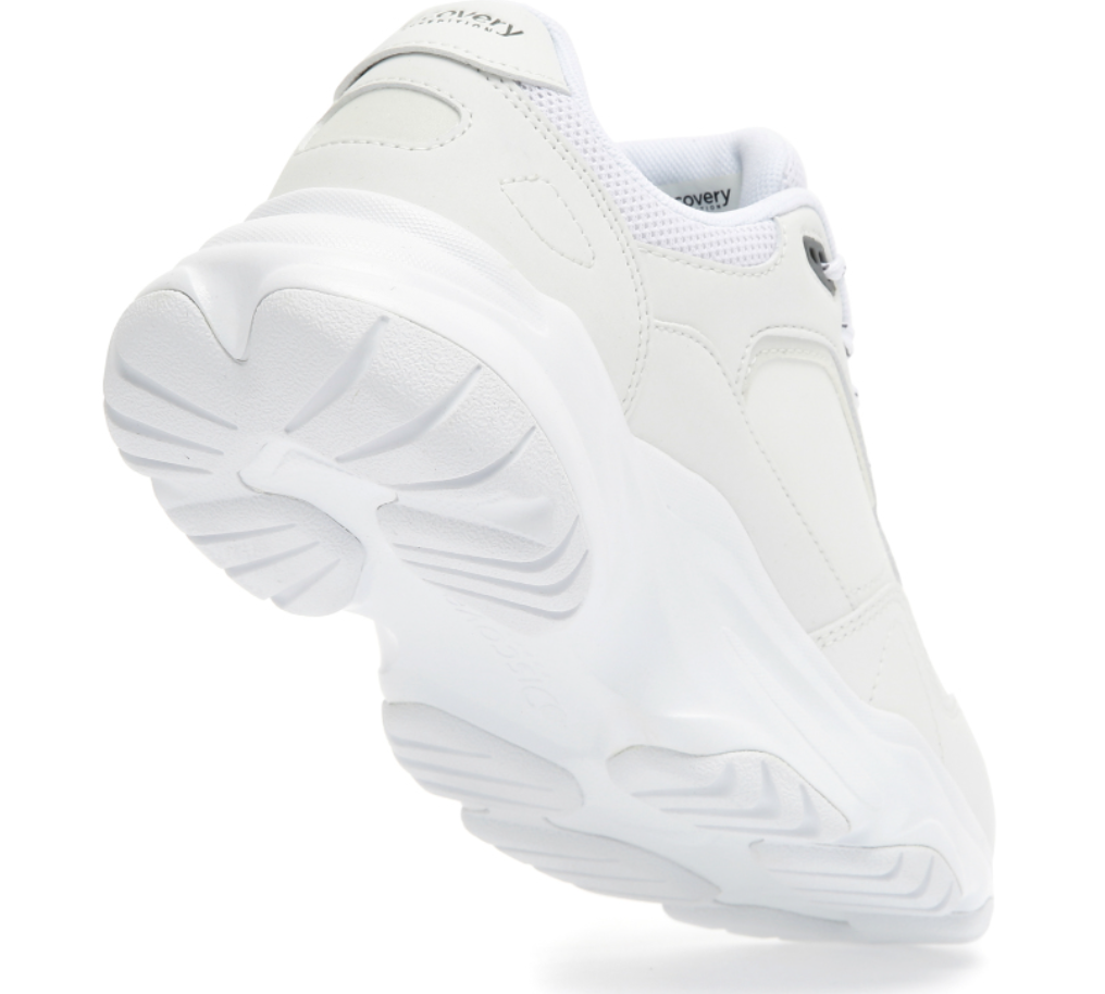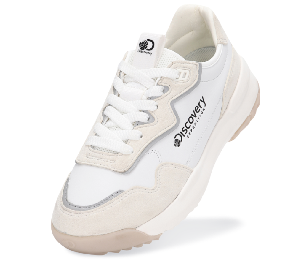 - 디테일을 살펴보면 BUCKET FRAME TPU 사출 구조로 흔들림을 잡아주어 안정적으로 보행을 할 수 있도록 도와줍니다. 이 신발은 발이 편안하다는 리뷰가 굉장히 많은데 그 이유는 3DX INSOLE에 있습니다. 2중 경도 EVA로 뒷꿈치 충격 흡수 아치를 잡아주어 발을 안정적이고 편안하게 만들어줍니다. 역시나 IU 창으로 DX FORM이 적용되어 편안한 쿠션감과 착용감을 제공해주며 뒷면의 3M POINT로 디자인 포인트와 안전성을 높였습니다. 밑창에는 디스커버리만의 멀티셀 아웃솔을 적용하여 바닥이 어떤 상태이든 뛰어난 접지력을 제공합니다. 오버사이즈 아웃솔은 무려 5CM의 키높이가 가능하고 편안하고 청키한 매력을 더해줍니다.