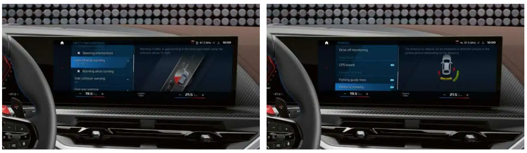 - BMW 12.3인치 디스플레이와 터치식 14.9인치 디스플레이가 결합된 커브드 디스플레이는 차량에 대한 정보를 더욱 쉽고 편리하게 볼 수 있도록 도와줍니다.