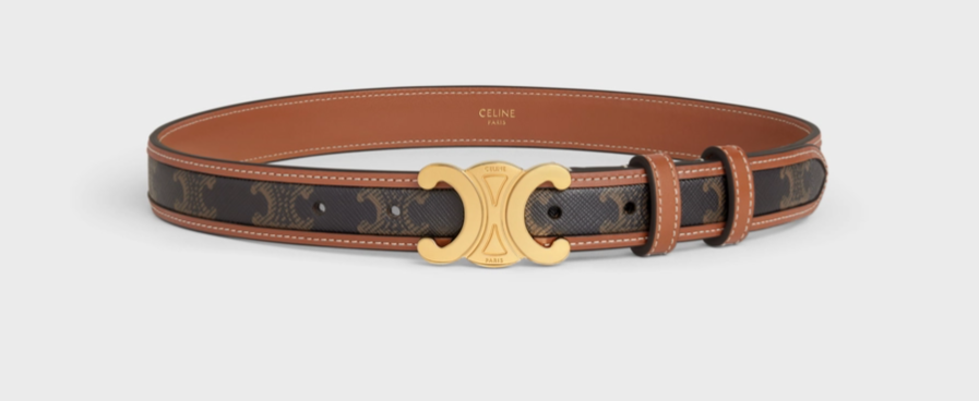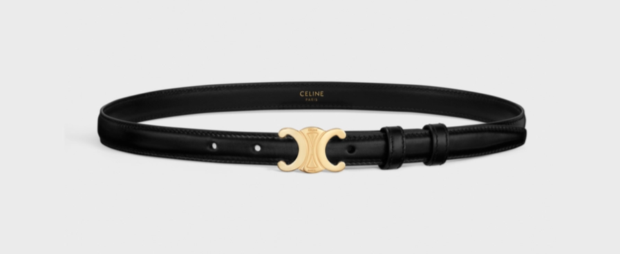 - 마지막은 바로 셀린느 벨트입니다. 비율은 좋아보이게 하고 심심한 룩에는 포인트 효과를 주는 마법같은 아이템입니다. 많은 여성분들이 포인트 아이템으로 사용하고 있습니다. 역시나 트리옹프 로고가 정중앙에 위치하고 있어 존재감을 나타내고 고급스러움을 더해줍니다.