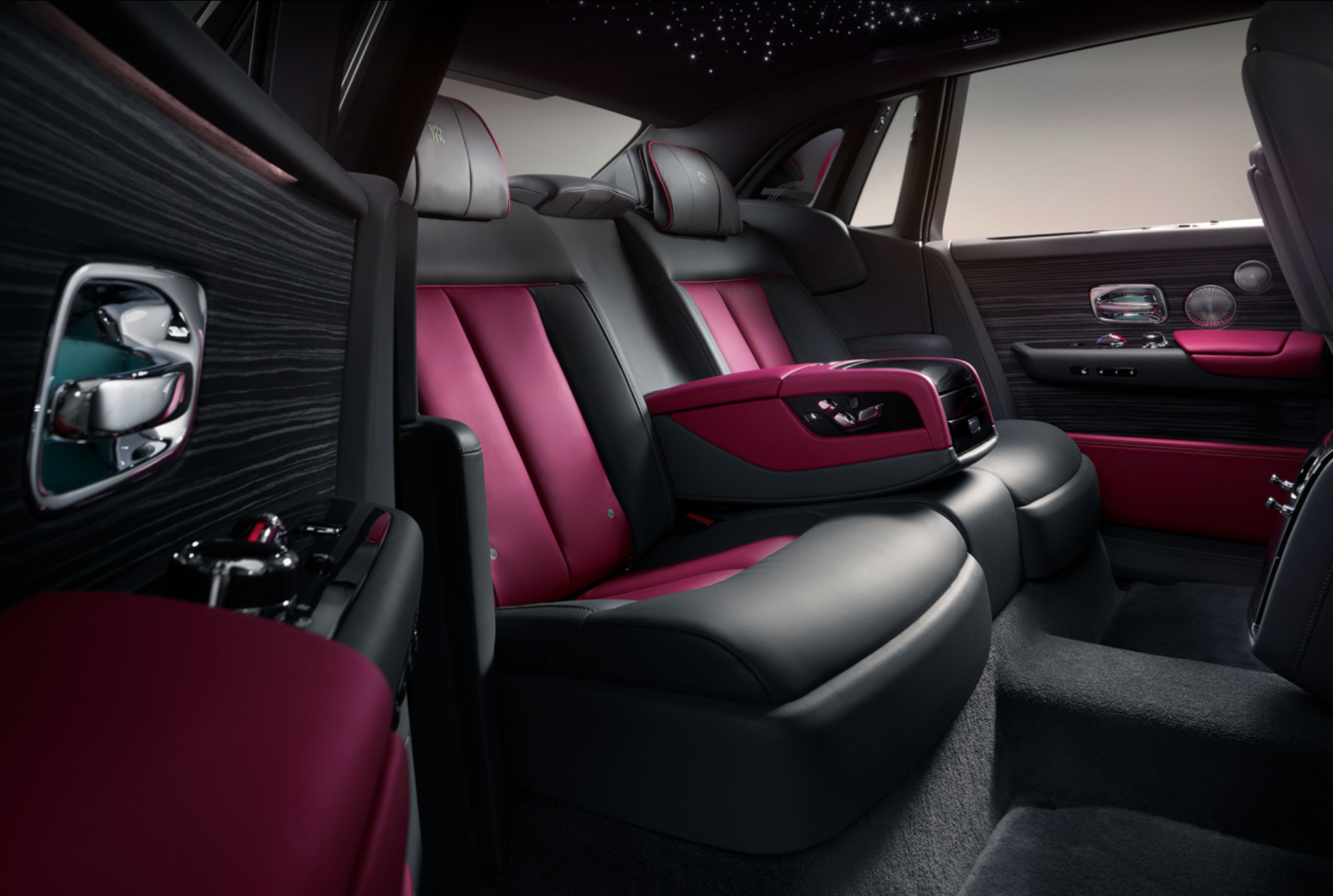 - 실내를 보면 곳곳에 최고급 가죽과 나무가 곳곳에 배치되어 있습니다. 롤스로이스는 세계 최고급 소재의 가죽과 나무만 선별하여 사용하기 때문에 하나하나가 감탄사가 나올 만큼 아름답고 경이롭습니다. 슈팅스타 헤드라이너는 가죽의 루프 라이닝에 섬세하게 수놓아진 수백 개의 광섬유 라이트로 만들어져 마치 밤하늘에 수없이 놓인 별을 보는 것과 같은 느낌을 받을 수 있습니다.