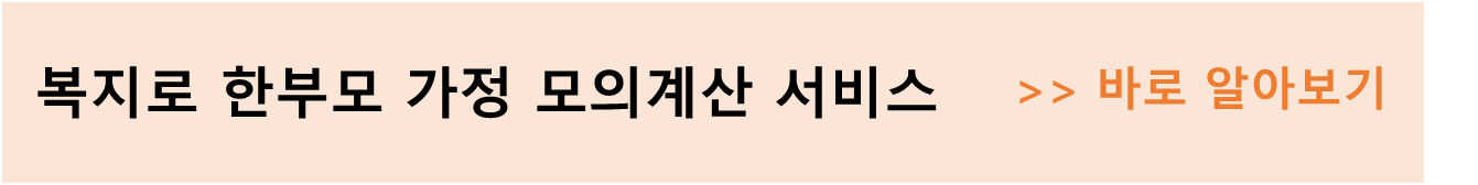 - 그럼 다음으로 한부모 가정 지원 대상이라면 신청서류는 어떤 것이 있고 또 신청은 어떻게 하는지 알아보겠습니다. 상기 배너에 복지로를 통하여 모의계산을 해볼 수도 있지만 복지로에서 신청 역시 가능합니다. 하지만 복지 서비스의 경우에는 주민센터 등을 방문하는 것이 가장 정확하고 빠르게 신청할 수 있기 때문에 주민센터에 방문신청하시는 것을 추천해드립니다.