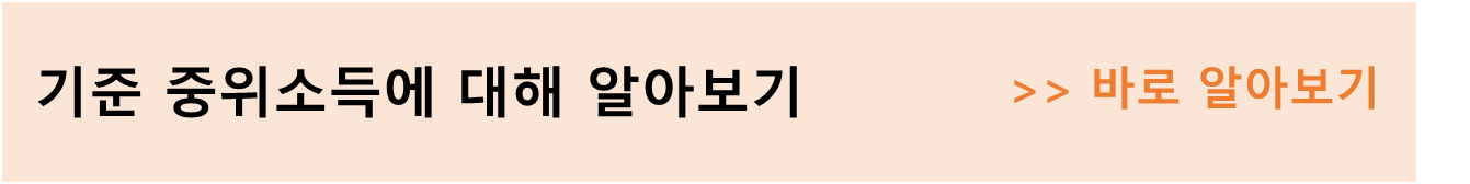 여기에서 기준중위소득이라는 단어가 나오는데 생소한 분들 많으시죠? 하지만 앞으로 지원사업을 받으려면 자주 등장하는 용어인만큼 평소에 잘 알아두시면 좋습니다. 기준중위소득에 대해서는 아래에 정리해놓았으니 확인하시기 바랍니다.