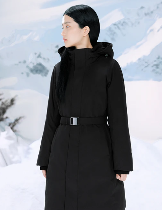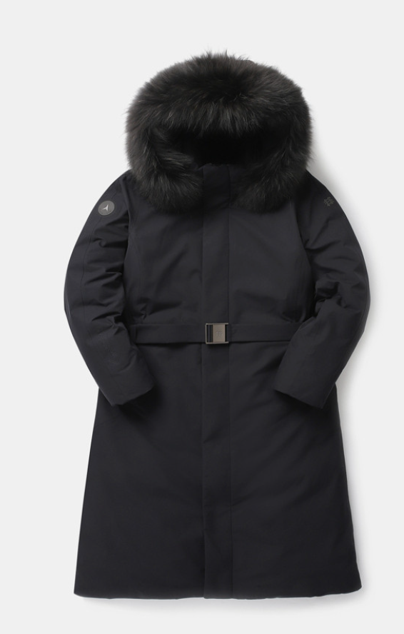 - 디자인 측면에서 좀 더 살펴보면 가장 큰 강점은 여성스러운 유려한 라인과 핏이라고 할 수 있구요. 특히 허리 부분에 버클이 허리를 조여주는 역할을 하면서 패딩보다는 자켓에 가까운 슬림한 핏의 느낌을 연출할 수 있습니다. 또한 전체적으로 디자인 자체가 심플하면서도 깔끔하기 때문에 패딩 자체가 우아한 느낌을 가지고 있습니다.