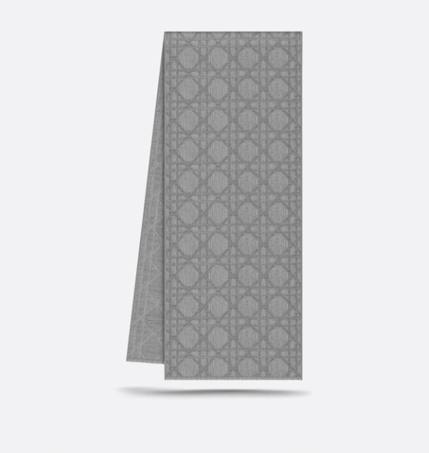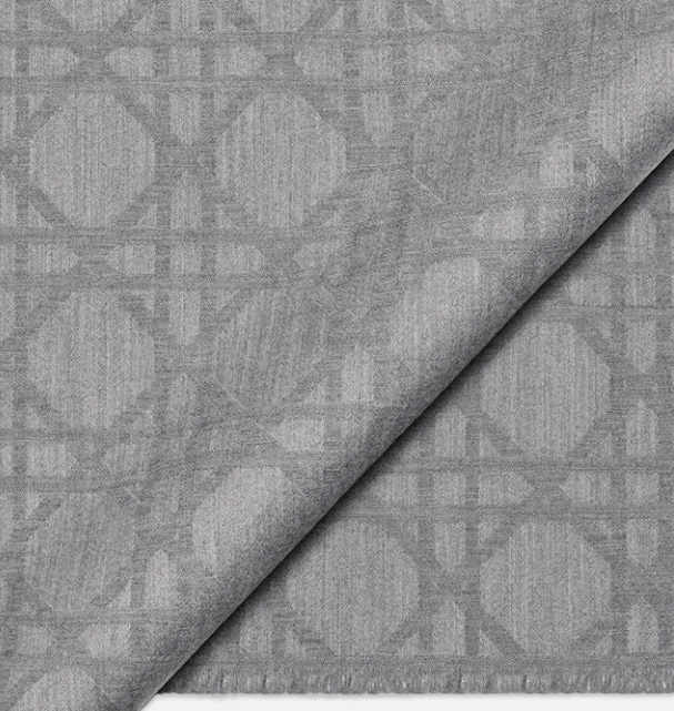 - 마지막으로 살펴볼 디올 목도리는 디올(Dior) 까나쥬 스카프입니다. 디올의 헤리티지이자 정수라고 할 수 있는 까나쥬 자카드 패턴이 사용되었고요. 디올 제품에 대해서 잘 모르시는 분들을 위해 자카드를 간략히 설명드리면, 보통 명품에 박혀있는 로고나 새겨진 패턴을 만드는 방식의 차이가 있는데요. 자카드는 일반적인 방식이 아닌 디올만의 자카드 공정이 따로 있어 고도의 정밀한 기술력으로 새겨지는 패턴을 의미합니다. 따라서 겉면이 좀 더 고급스럽고 패턴도 정교하면서 매력적인 느낌이 있고, 이 제품 역시 마찬가지입니다.
