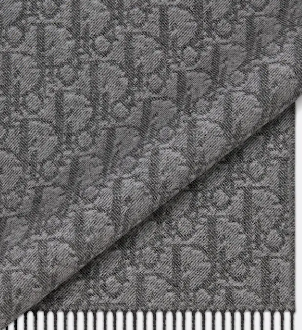 - 소재는 울 100%로 이탈리아에서 제조되고 있고요. 끝단에 프린지 장식이 하나의 포인트를 주고 있습니다. 다이아몬드 패턴 사이사이에 DIOR 레터링이 들어가서 또 하나의 매력 포인트를 주고 있구요. 디올 목도리 제품 중에서 트렌디하고 젊으며 세련된 감각을 연출하고 싶으신 분들께 추천해 드리고 싶은 스카프입니다.