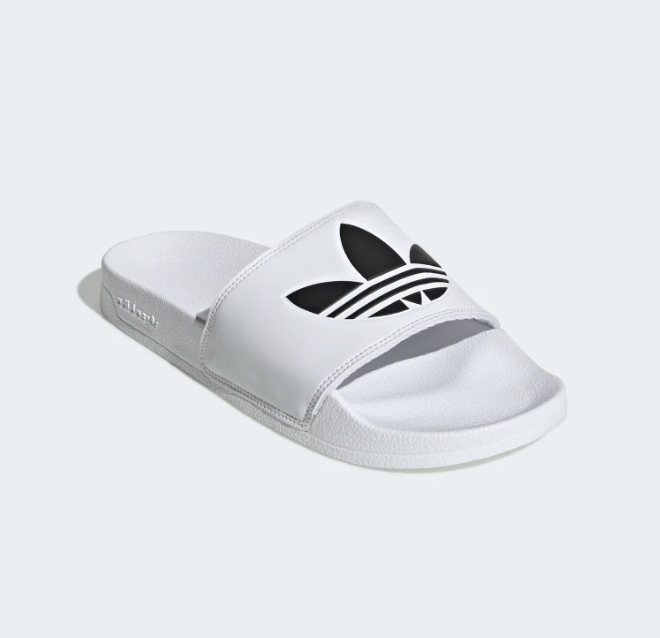 - 세 번째로 소개해 드릴 제품은 아디다스 아딜렛 라이트입니다. 심플하면서도 아디다스의 로고가 포인트가 되어 너무 이쁜 슬리퍼인데요. 상단에 있는 아디다스 트레포일이 스포티하고 개성 있는 느낌을 연출해 주는 슬리퍼입니다. 실제로 사무실 내에서만 신는 분들이 가장 즐겨 신는 신발이기도 합니다.