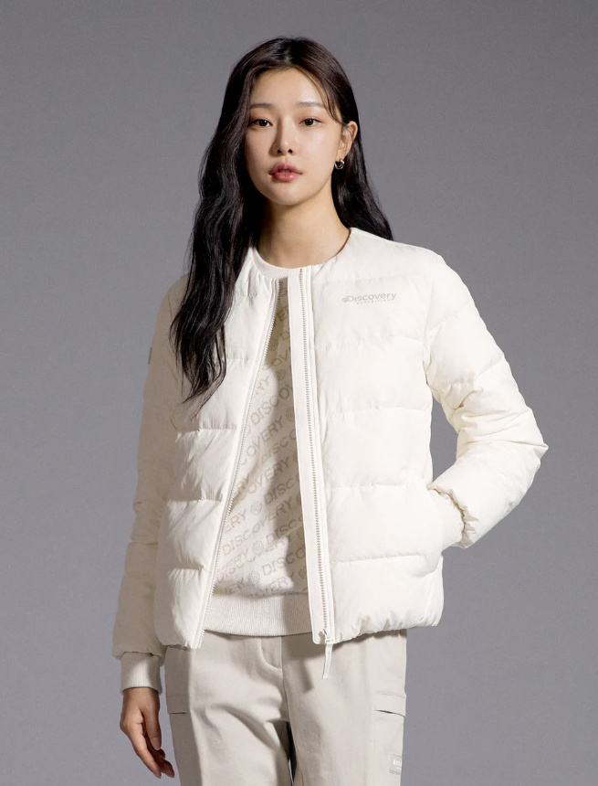 - 이 제품에 로고는 디스커버리 지구 와펜으로 되어 있어 더 세련된 무드를 느낄 수 있고 스냅 버튼을 적용해서 간편하게 착용하고 이너용으로 활용하기가 좋습니다. 역시나 구스다운 필파워 충전재로 따뜻하게 입을 수 있고요. 경량성을 가지고 있어 휴대하기 좋고 부피감도 적당해 직장에서 입고 있기 정말 좋은 제품입니다. 특히 많은 후기들을 보면 핏이 날씬해 보여 좋다는 평이 많은데 얄쌍한 느낌과 함께 기장이 짧아 다리가 길어 보이는 효과도 있는 제품입니다.