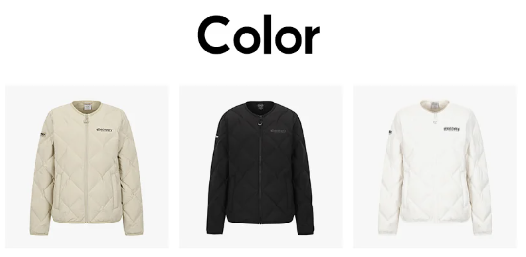 - 충전재로는 다운볼이 크고 필파워가 우수한 프리미엄 구스다운이 들어가서 따뜻하기도 하지만 가볍기도 매우 가벼워 휴대하고 다니기 편리합니다. 또한 워낙 캐주얼한 디자인과 색상으로 출시되었고 자연스러운 핏으로 부담없이 입을 수 있는 패딩이고요. 이 제품의 가장 좋은 점 중에 하나는 포켓인데, 기타 경량패딩과는 다르게 포켓 부분에 지퍼가 있어 중요한 물건을 수납할 때도 굉장히 편리하다는 장점이 있습니다. 색상은 화이트, 블랙, 베이지 세 가지 색상으로 출시되고 있습니다.