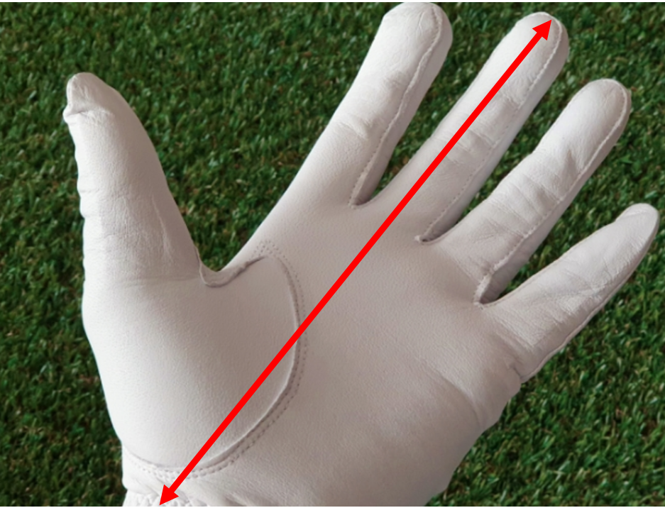 - 다음으로 골프 장갑 사이즈를 재는 방법입니다. 사이즈를 재는 방법은 사진에서 보시는 것처럼 두 가지 방법이 있습니다. 첫 번째로 사이즈를 재는 방법은 첫 번째 사진처럼 중지 손가락 끝부터 손목 첫 주름까지의 길이를 재는 방법입니다. 두 번째로 사이즈를 재는 방법은 줄자로 두 번째 사진처럼 빨간 라인을 따라 한 바퀴를 돌려서 길이를 측정하는 방법입니다.