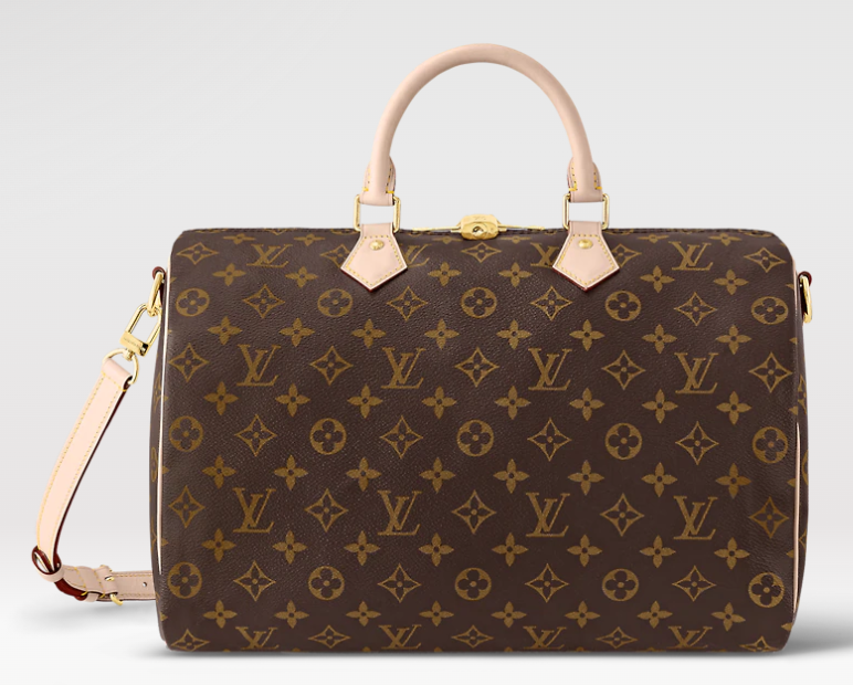 - 루이비통에는 원래 스피디라는 가방 라인업이 있는데요. 뒤에 반둘리에는 프랑스어로 '어깨끈'을 의미하며, 사진과 같이 스트랩이 있는 버전은 스피디 뒤에 반둘리에라는 명칭이 별도로 붙습니다. 두 가지 디자인은 스트랩의 유무만 제외하고는 거의 똑같습니다.