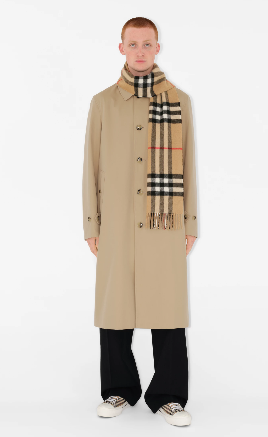 - 오늘 소개해 드릴 제품은 이러한 버버리의 체크 캐시미어 스카프인데요. 버버리의 대표적인 색상과 대표적인 체크가 합쳐지면서 버버리 고유의 느낌을 잘 살린 목도리입니다. '클래식이 가장 아름답다.'라는 명언이 있는데요. 이 문구에 딱 맞을만한 디자인으로 정말 버버리다운 목도리라고 할 수 있습니다. 스코틀랜드에 위치한 200년 역사를 가진 직물 공장에서 전통 베틀로 제작이 된다고 하고요. 현지의 천연수로 세척한 후에 티젤로 브러싱 되기 때문에 굉장히 부드러운 촉감이 특징인 목도리입니다.