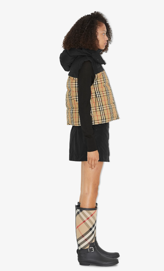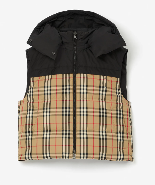 - 저는 개인적으로 버버리의 체크 무늬 패턴이나 톤을 참 좋아하는 편인데 평소에 버버리 패턴을 좋아하시는 분들이라면 정말 강력하게 추천해 드리고 싶은 패딩조끼이구요. 만약 평소에 버버리 패턴이나 명품 로고가 부담스러우신 분들도 상관없이 입으실 수 있다는 것도 장점인데, 그 이유는 바로 리버서블 타입이기 때문입니다. 따라서 그날그날의 기분에 따라 또 취향에 따라 언제든지 사진과 같이 뒤집어 입을 수 있어 활용성이 좋은 패딩조끼이구요. 한 면은 버버리 체크, 다른 한 면은 기마상 디자인이 있는 아플리케 디자인으로 어느면으로 활용을 해도 정말 이쁜 디자인의 패딩조끼입니다. 가격은 공식 홈페이지 기준 225만원입니다.