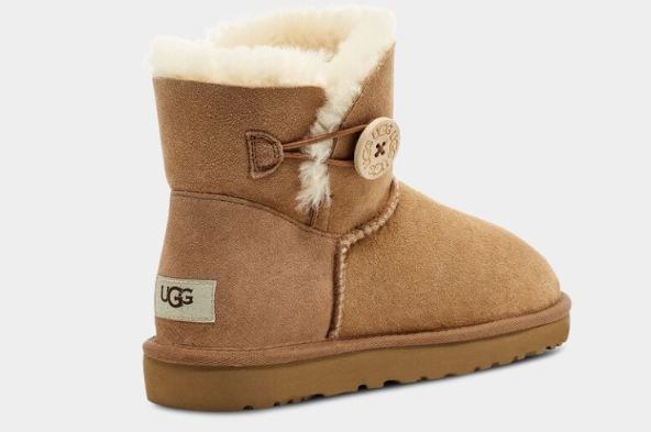 - 같은 베일리 타입이지만 버튼이 달려있는 베일리 버튼입니다. 해외 셀럽들이 레깅스에 많이 신기도 하는 어그 부츠인데요. 버튼 모양이 포인트가 되어 어그 부츠를 더 이쁘고 돋보이게 만들어주는 장점이 있습니다. 미니 베일리 보우와 마찬가지로 오리지널 어그 부츠가 밋밋하게 느껴지시는 분들에게는 미니 베일리 버튼도 추천드립니다.