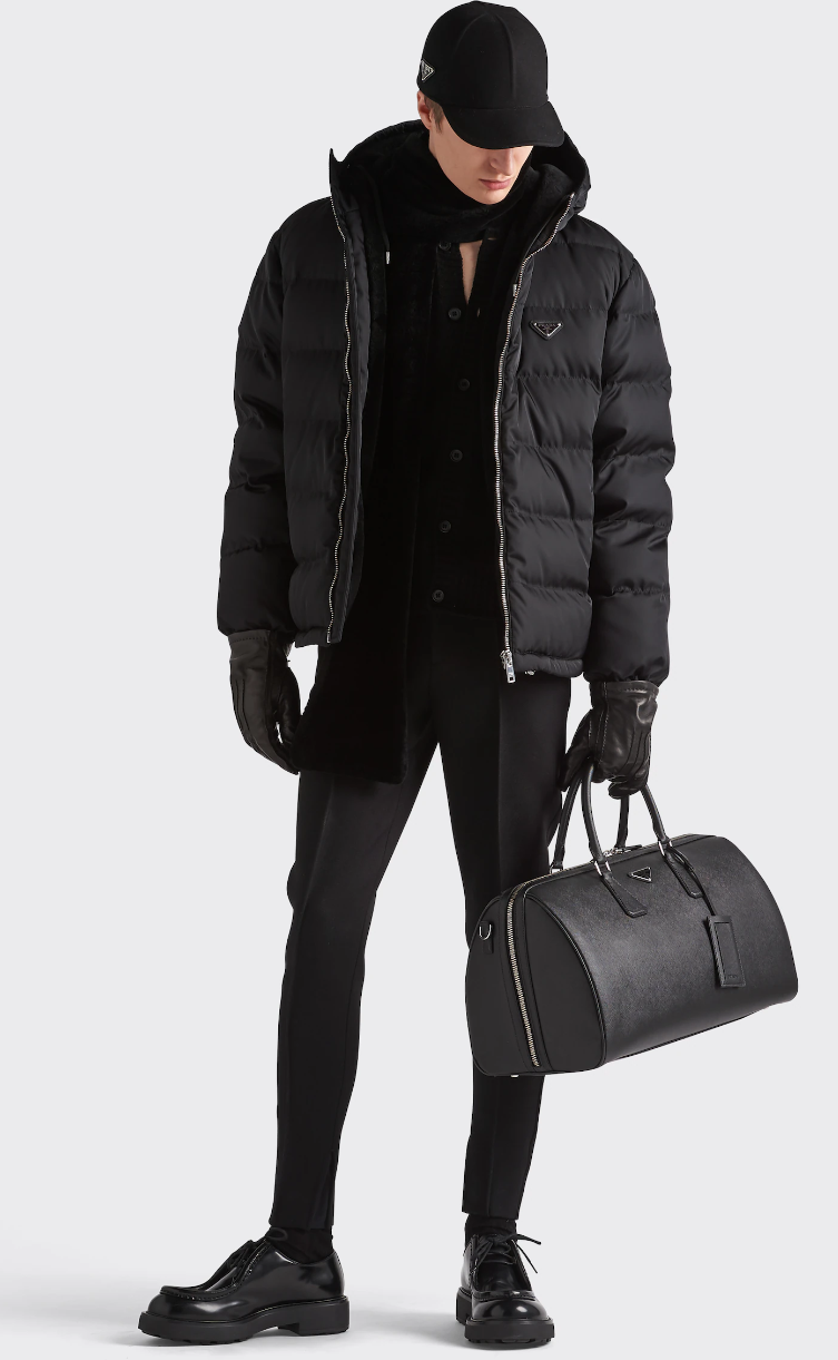 - 세 번째로 소개해 드릴 제품은 프라다의 리나일론 크롭 다운재킷입니다. 아마 남성분들은 여성분들보다는 명품에 관심이 없으셔서 프라다는 명품백만 유명하다고 생각하시는 분들도 많이 계실 텐데요. 프라다는 실제로 패딩이나 아웃터 제품에도 상당히 유명한 제품들이 많습니다. 리나일론 크롭 다운재킷도 그중 하나입니다.