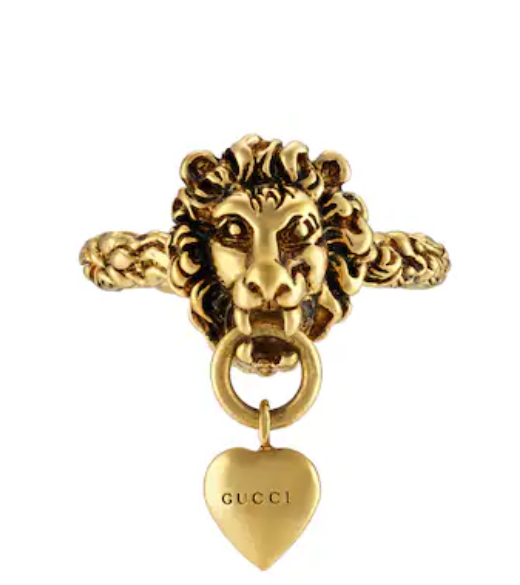 구찌 라이언 헤드 라인 - 크리스털 라이온 헤드 반지 / 라이온 헤드 하트 반지 / 크리스털 디테일 라이온 헤드 반지