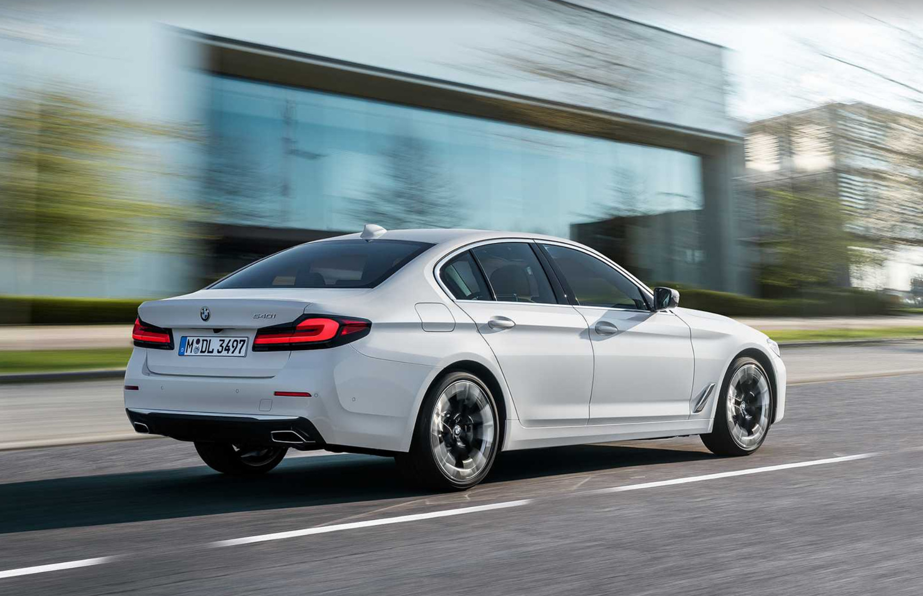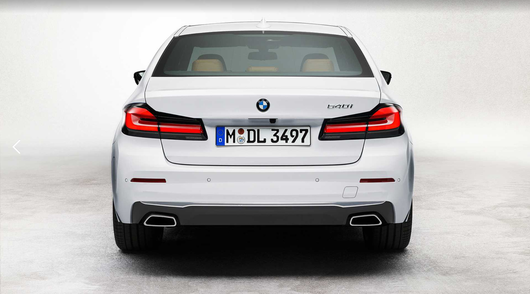 - BMW 5 시리즈는 테일램프가 보다 납작하고 길쭉한 모습입니다. 리어 라이트는 직선을 강조하며 L자 모양 크롬 스트립을 삽입했고, 범퍼도 훌륭한 볼륨감으로 BMW 5 시리즈만의 파워풀하고 역동적인 모습을 보여줍니다.