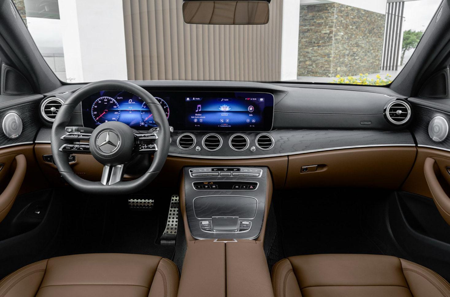 - 벤츠 E클래스 내부의 가장 큰 특징이라고 한다면 바로 최첨단 시스템과 앰비언트 라이트의 조화입니다. 모든 벤츠 시리즈에서 그렇듯이 형형색색의 앰비언트 라이트는 운전자와 동승자에 취향에 맞는 최적의 주행 분위기를 연출해줍니다. 또한 벤츠만의 지능 시스템인 최첨단 소프트웨어는 완벽한 디지털화를 구현합니다. 반면 BMW 5 시리즈는 모든 소재를 비건으로 사용하여 5 시리즈만의 특유의 분위기를 연출합니다. 크리스탈 디자인을 반영한 BMW 인터렉션 바, 물리적 버튼을 최소화한 센터 콘솔의 기어 셀렉터 등은 BMW 5 시리즈만의 실내 인테리어 특성을 잘 나타내주고 있습니다.