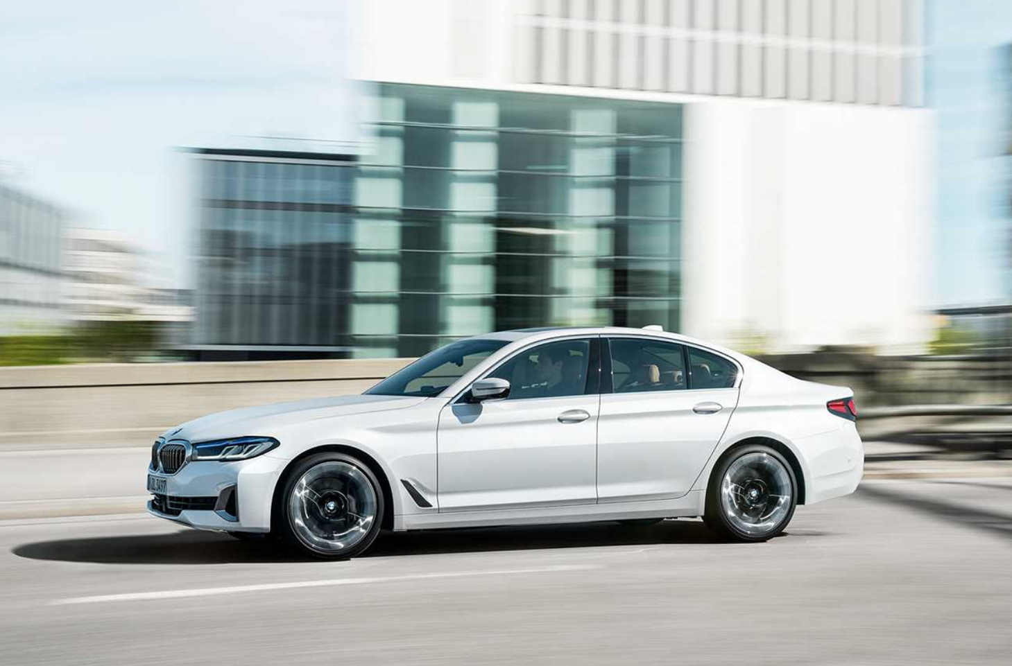 - 반면 BWM 5시리즈는 측면에서 역동적인 디자인을 연출했습니다. 검은 사이드 스커트와 두 개의 캐릭터 라인이 끝으로 가면서 모이는 형태로 설계를 했고, C필러의 호프마이스터킨크에 숫자5를 나타내는 그래픽이 양각으로 적용되었습니다.