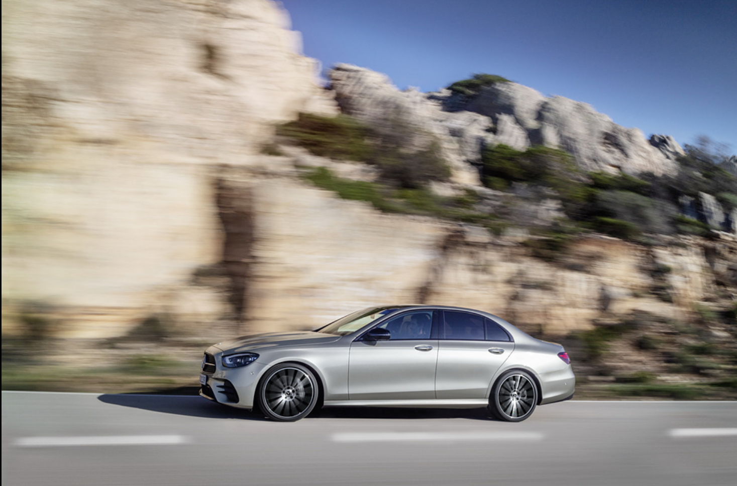 - 다음으로는 측면입니다. 먼저 벤츠 E클래스는 측면을 보면 굉장히 안정적이라는 느낌이 드는데요. 그 이유는 긴 보닛과 짧은 프런트 오버행이 조화롭게 설계되었기 때문입니다. 휠베이스는 이전보다 더 길어져서 웅장한 느낌을 주며, A필러는 최대한 뒤쪽으로 이동시켰습니다.