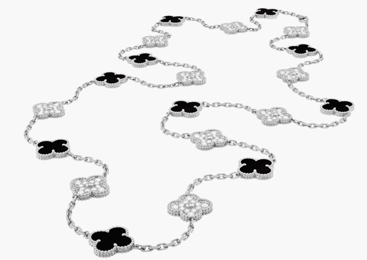 - 반클리프 앤 아펠에도 대표적인 라인업들이 있는데요. 예를 들면 반클리프 앤 아펠하면 빼놓을 수 없는 알함브라를 비롯해 뻬를리, 프리볼 등이 있습니다. 이 중에서도 가장 인기가 있는 라인업은 알함브라이고요. 네잎클로버 모양의 디자인을 하고 있는 라인업입니다. 알함브라는 1920년대 메종의 아카이브에서 처음 등장한 이후로 지금까지 줄곧 엄청난 스테디셀러로 활약하며 반클리프 앤 아펠의 대표적인 모델이 되었습니다. 가격대도 90만 원대부터 13억까지 엄청나게 다양하게 분포되어 있기 때문에 일반적인 선물용으로도 좋고 예물용으로도 너무 좋은 라인업이라고 할 수 있습니다.