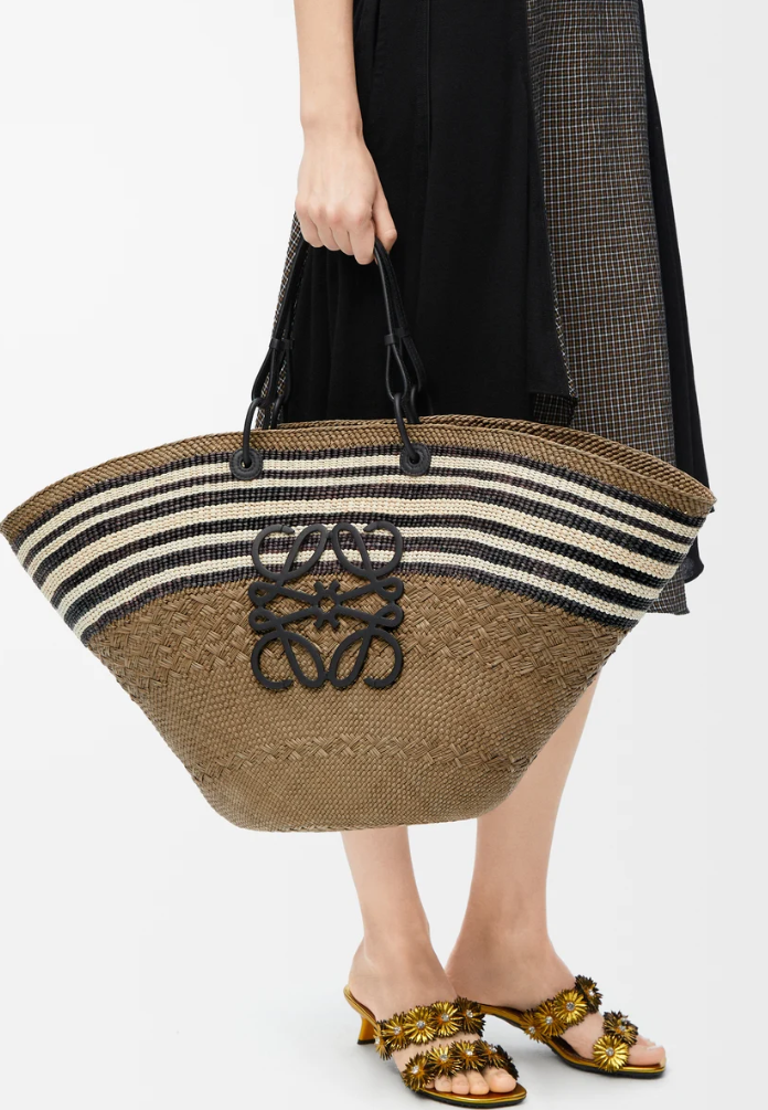 마지막으로 소개해 드릴 제품은 로에베 제품이에요. 바로 라지 애너그램 바스켓인데요. 이번 여름 시즌을 맞아 새로 나온 신상품이에요. 가격은 80만 원대이고요.