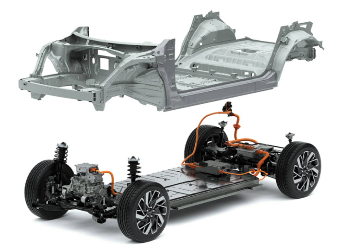 - 기존의 가솔린으로 운행되던 내연 기관차에서 전기차로 넘어가면서 내연기관 자동차의 뼈대를 그대로 사용했기 때문에 여러 가지 제약이 있었습니다. 따라서 전기차의 성능을 모두 끌어낼 수 없는 구조적 한계를 안고 있었습니다. 하지만 E-GMP 기술은 내연기관의 플랫폼과는 달리 바닥을 평평하게 만들 수 있고 엔진과 변속기, 연료탱크 등이 차지하던 공간이 사라졌기 때문에 실내 공간 활용성이 상당히 높습니다.