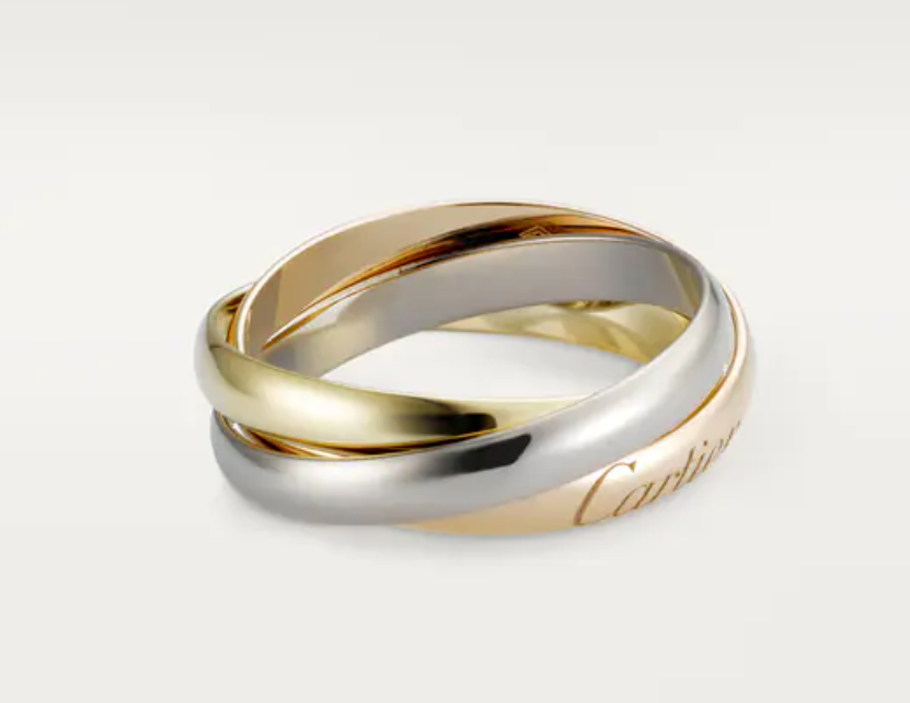 - 세 가지의 링은 모두 다른 재질과 색상을 가지는데요. 로즈 골드, 옐로 골드, 화이트 골드가 멋스럽게 어우러지면서 손가락에 끼면 아름답고 세련된 느낌을 주는 반지입니다. 가격은 100만 원대에서 5 억 원에 이르기까지 다양하게 분포되어 있습니다. 다른 까르띠에 반지 라인업에 비해 가격이 다소 저렴한 면이 있어 예물 반지로 집에 간직하는 것이 아니라 편하게 끼고 다닐 수 있는 반지를 선택하시는 분들이 가장 선호하는 라인업입니다. 미니멀하고 세련되어 어느 옷에나 잘 어울린다는 특징이 있습니다.