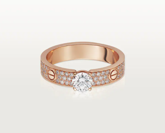 - 첫 번째로 소개해 드릴 제품은 까르띠에 LOVE 반지입니다. 워낙 유명한 반지라 까르띠에 하면 빠질 수 없는 대표적인 반지인데요. 영원한 사랑을 뜻하는 LOVE 반지는 예물 반지나 프러포즈 반지로도 자주 애용되고 있는 스테디셀러입니다. 기본적으로 라운드형에 다이아가 없는 LOVE 반지 라인이 따로 있기도 하지만 예물 반지는 상기에 사진처럼 아름답고 영롱한 다이아몬드가 박혀 있는 것이 차이점이라고 할 수 있습니다.