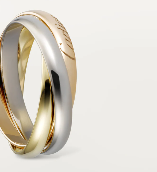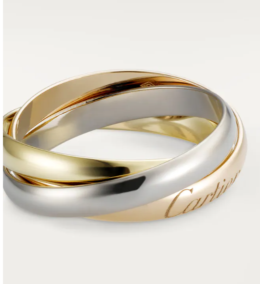 - 세 가지의 링은 모두 다른 재질과 색상을 가지는데요. 로즈 골드, 옐로 골드, 화이트 골드가 멋스럽게 어우러지면서 손가락에 끼면 아름답고 세련된 느낌을 주는 반지입니다. 가격은 100만 원대에서 5 억 원에 이르기까지 다양하게 분포되어 있습니다. 다른 까르띠에 반지 라인업에 비해 가격이 다소 저렴한 면이 있어 예물 반지로 집에 간직하는 것이 아니라 편하게 끼고 다닐 수 있는 반지를 선택하시는 분들이 가장 선호하는 라인업입니다. 미니멀하고 세련되어 어느 옷에나 잘 어울린다는 특징이 있습니다.