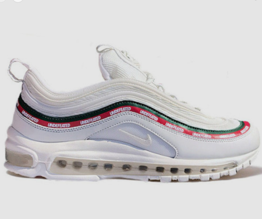 - 다음으로 소개 해드릴 제품은 나이키 에어맥스 97 언디핏입니다. 가격은 어느정도 있는 편이지만 가격만큼이나 엄청난 디자인과 핏을 보여주는 운동화입니다. 미래 지향적인 슬림한 디자인에 유려한 곡선 라인과 언디핏 컬러감이 매치된 나이키와 언디핏의 콜라보레이션 운동화입니다. 검색량이나 리셀가를 보더라도 나이키와 언디핏의 콜라보레이션 제품이 엄청난 인기가 있다는 것을 알 수 있습니다. 화이트톤 위에 차밍 포인트로 언디핏 라인이 새겨져 있고, 덕분에 컬러감에 있어서도 기존의 에어맥스 시리즈를 압도하는 느낌입니다. 워낙 실물 컬러가 이쁘기 때문에 어느 바지를 입고 신더라도 잘 어울리는 운동화입니다. 가격은 90만원대 후반에서 170만원까지 다양하게 분포되어 있습니다.
