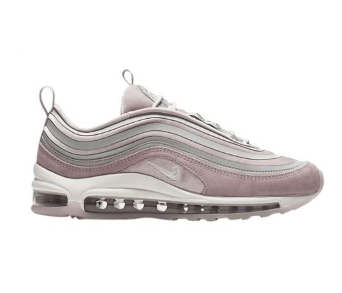 - 마지막으로 소개해 드릴 제품은 나이키 에어맥스 97 울트라 파티클로즈 입니다. 완전 여성 취향 저격용으로 나온 울트라 파티클로즈는 고급스러운 핑크 벨벳 소재에 연블루 컬러 띠가 둘러져 있고, 바닥 아웃솔을 연핑크로 마무리하여 많은 여성분들에게 사랑받고 있는 스테디셀러입니다. 톤 다운된 로즈 핑크 색상, 그레이, 스웨이드 소재의 어퍼가 어우러지면서 고급스러우면서도 과하지 않은 화려함을 나타내줍니다. 역시나 에어맥스 시리즈답게 에어쿠션으로 충격흡수가 가능해 착화감이 좋고, 경량이라 가벼우면서 청바지나 기타 바지와 잘 어울리는 장점이 있습니다. 여성들에게 원픽인 에어맥스 시리즈 입니다. 가격은 30만원대입니다.
