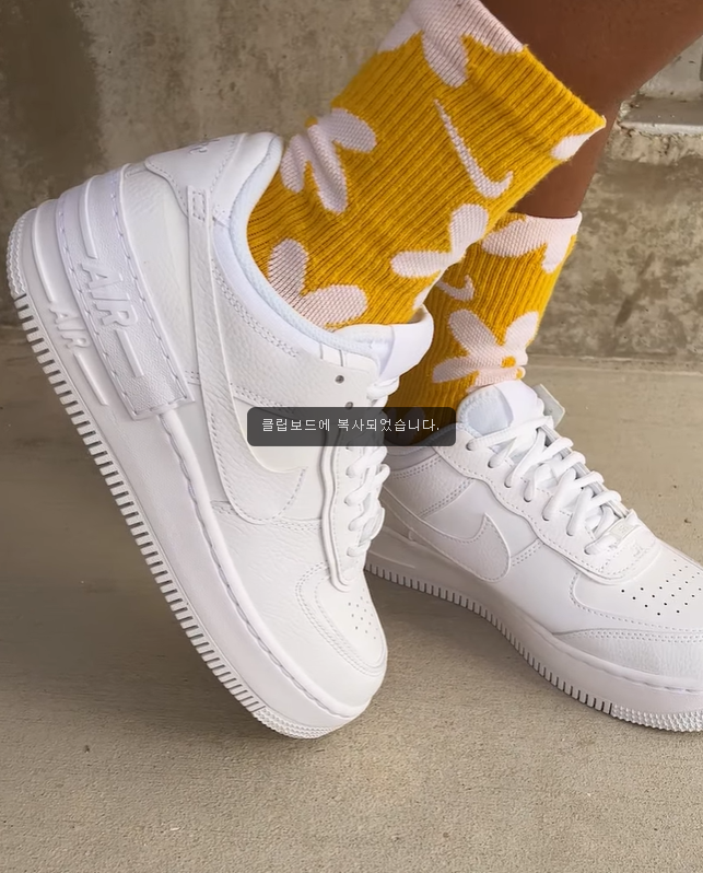 - 특히 나이키 에어포스 1에서 파생된 에어포스 1 쉐도우는 특유의 감각적이고 아름다운 색상으로 여러 가지 버전을 다채롭게 출시하고 있어, 많은 여성분들이 선호하고 있습니다. 본인의 개인 취향이나 분위기에 맞게 색상을 골라 신을 수 있다는 장점이 있고, 기본 틀은 나이키 에어포스 1 같지만 좀 더 감각적인 색깔과 약간의 변형을 통해 더 이쁘고 개인의 개성을 강조할 수 있게 된 것이 가장 큰 특징입니다. 상기 사진들과 같이 어떤 스타일과 코디를 하더라도 잘 어울립니다. 어떤 옷과 코디를 하더라도 잘 어울린다는 점이 나이키 에어포스 1의 가장 큰 장점인 듯 합니다.