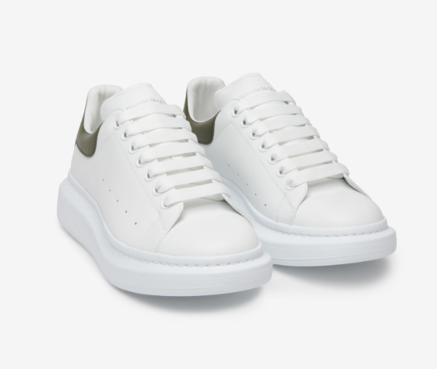 - 두번째로 소개해 드릴 제품은 알렉산더 맥퀸의 대표적인 라인업 중 하나라고 할 수 있는 오버사이즈 스니커즈입니다. 화이트와 카키가 절묘한 조합을 이루면서 너무나 캐주얼하고 이쁜 운동화인데요. 디자인이 워낙 깔끔하고 세련되어 많은 분들께 인기 있는 제품이고요. 실제로 신발을 신었을 때도 상당히 편안한 착용감을 느낄 수 있는 제품입니다.