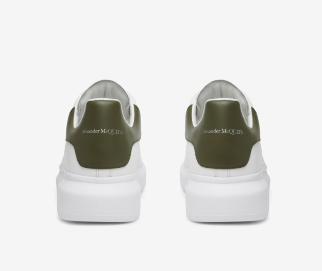 - 이 제품의 매력포인트라고 할 수 있는 부분은 아무래도 서로 다른 배색인데요. 흰색과 카키색이 정말 이렇게 잘 어울릴 수 있나 하는 생각이 들 정도로 조화롭게 어우러져 있고요. 뒷면에는 알렉산더 맥퀸이라는 글자가 카키색 안에 너무 이쁘게 레터링 되어 있어 더욱 이쁜 포인트를 주는 스니커즈입니다.