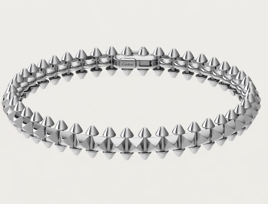 - 클래쉬 드 까르띠에가 처음 탄생할 당시 서로 상반되는 이미지를 하나로 조합하여 디자인되었다고 전해집니다. 뾰족뾰족한 스터드와 부드러운 곡선의 사각형이 조화롭게 어우러지면서 지금의 클래쉬 드 까르띠에가 탄생했고요. 실제로 보면 스터드가 부담스럽지 않고 팔에 둘렀을 때 굉장히 세련되고 느낌 있는 스타일을 연출할 수 있습니다.
