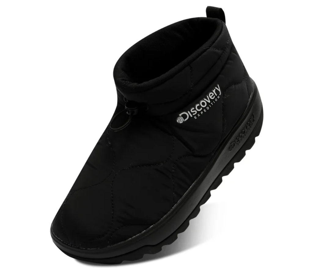 - 첫 번째로 소개해 드릴 브랜드는 디스커버리입니다. 깔끔한 블랙이라 세련되었지만 지구 모양을 형상화했다는 둥글둥글한 디자인으로 너무 이쁜 디자인과 따뜻하고 활동성도 좋은 패딩 슈즈인데요. 높은 보온성으로 인해 한겨울에도 따뜻하게 신을 수 있고 특히 발이 편안하고 신고 움직이기가 좋기로 유명한 신발입니다.