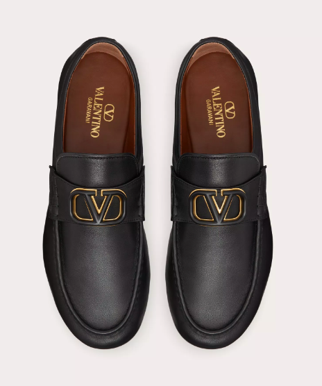 - 세 번째로 소개해 드릴 제품은 발렌티노의 브이로고 시그니처 송아지 가죽 나파 로퍼입니다. 발렌티노는 이탈리아의 명품 브랜드로 특유의 'V' 로고나 징스터드가 굉장히 유명한 브랜드인데요. 국내에서는 스니커즈가 굉장히 유명한데, 남성 구두 역시도 세련된 스타일과 발렌티노만의 특유의 분위기로 인해 인기가 많은 편입니다.