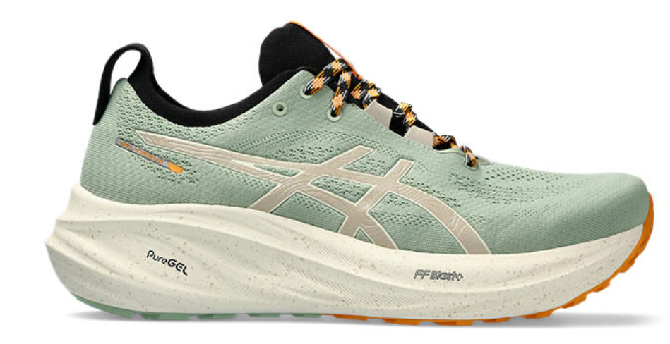 네 번째로 소개해 드릴 제품은 아식스 트라부코 맥스 3입니다. 이번에 나온 신상품이고요. 적은 힘으로 트레일을 달릴 수 있게 만들자는 목표 아래 생산된 신제품으로 다양한 추진력과 기능성으로 편안하게 신고 달릴 수 있는 제품입니다. 굽 높이는 사진에서 보시는 것처럼 쿠셔닝으로 인해 3-4cm로 높은 편입니다.