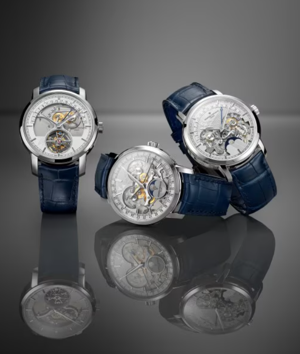 공식 홈페이지에서는 트래디셔널을 또 세 가지로 분류하고 있습니다. 바로 오픈페이스와 매뉴얼 와인딩, 투르비용 퍼페츄얼 캘린더로 나누고 있는데요. 각각은 또 어떤 기준으로 나뉜 것인지 쉽게 설명해 드릴게요. 먼저 사진부터 살펴보겠습니다. 왼쪽부터 오픈페이스, 매뉴얼 와인딩, 투르비용 퍼페츄얼 캘린더입니다.