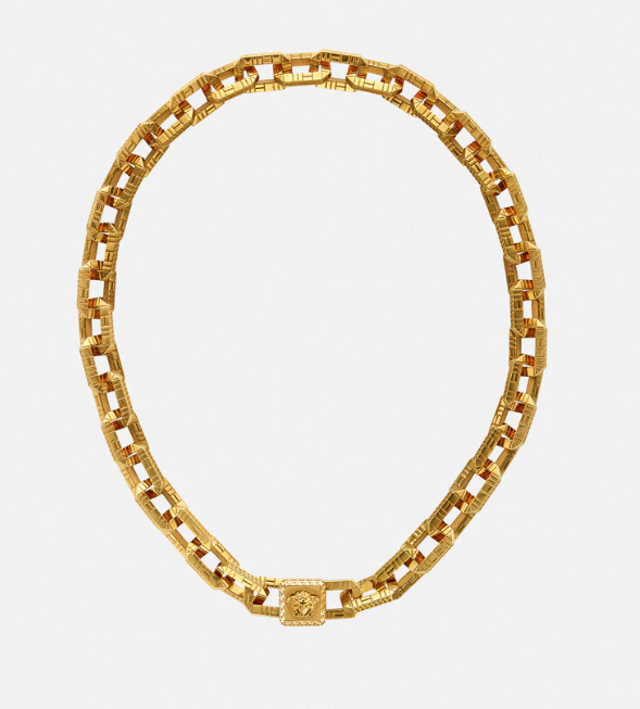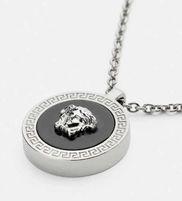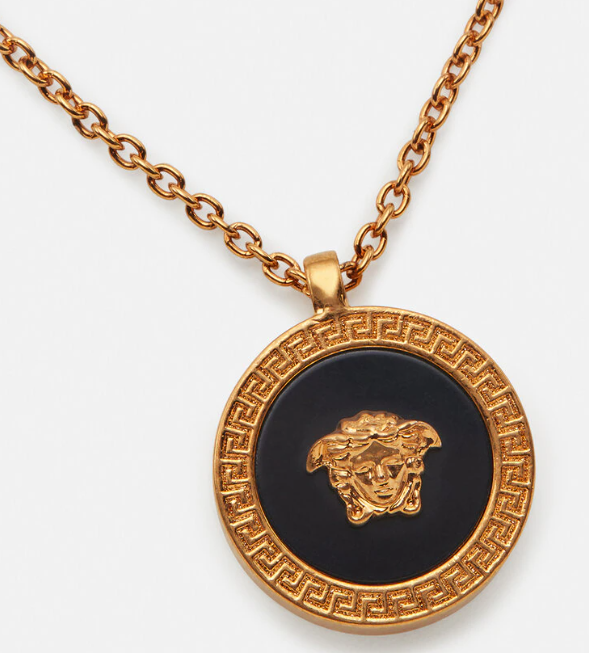 - 두 번째로 소개해 드릴 브랜드는 베르사체입니다. 베르사체는 워낙 유명해서 이미 알고 계신 분들도 있으실 텐데 메두사의 머리를 한 브랜드와 화려한 디자인과 색상이 특징인 브랜드입니다. 목걸이에서도 이러한 특징이 여실히 드러나는데 메두사 머리 장식을 한 목걸이들도 굉장히 많이 있고 특히 사진에서 보시는 것처럼 시그니처인 메두사 머리가 상당히 디테일하고 세련되게 표현된 목걸이들도 많습니다.