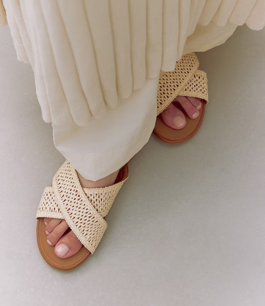 투톤 인조 라피아 소재와 부드러운 소재의 안감 사용으로 여름철 내내 보헤미안 느낌을 내면서 편안하게 신을 수 있는 제품입니다!