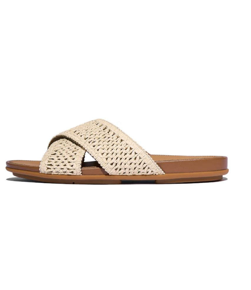 네 번째로 추천해 드릴 제품은 우븐 크로스 브라운 여성 슬라이스예요. 크로스오버 디자인의 슬라이드로 세련된 스타일의 디자인을 가지고 있는 제품인데요.