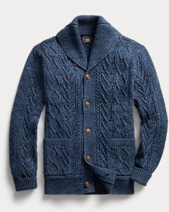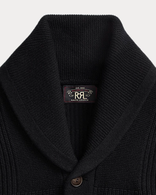 4) 폴로 텍스처 캐시미어 숄 칼라 가디건