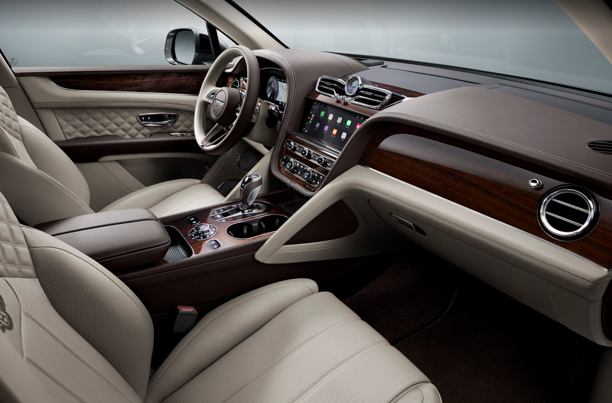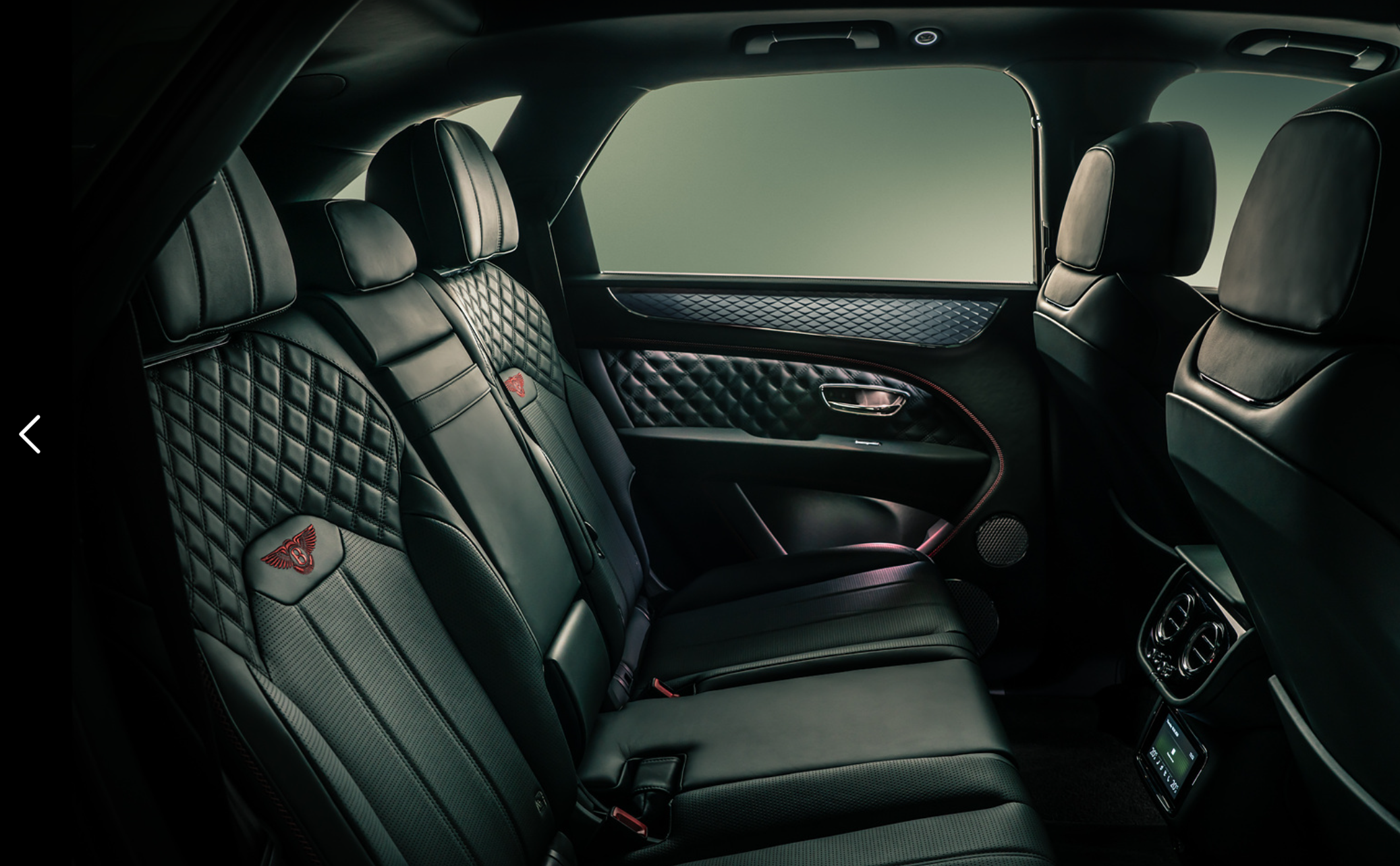 - 실내 인테리어 또한 기존에 사용하던 베니어 마감을 대신하여 현대적인 첨단 느낌의 하이글로스 탄소섬유 마감, 최고급 가죽 핸들, 강렬한 레드의 크리켓 볼 등 혁신적이고 세련된 인테리어를 제공합니다. 최고급 럭셔리카답게 장인의 정성어린 수공예 인테리어와 천연 가죽, 정교한 마감처리 등은 벤테이가만의 독보적인 실내 분위기를 자아냅니다.
